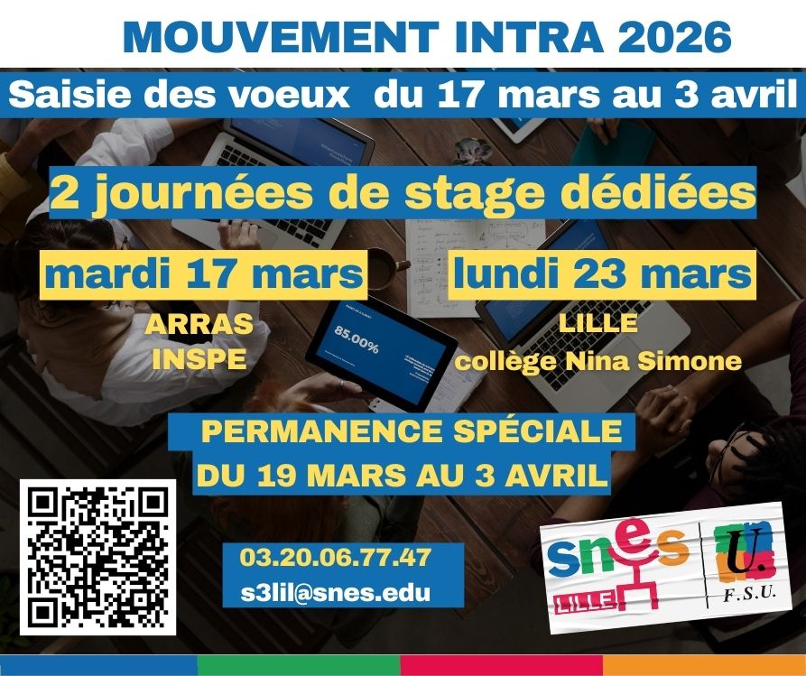 Afin de vous accompagnez et de vous conseiller au mieux sur la stratégie à adopter pour le mouvement intra académique, la section académique du SNES FSU organise deux journées de stage de formation syndicale dédiées :